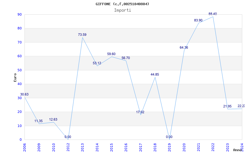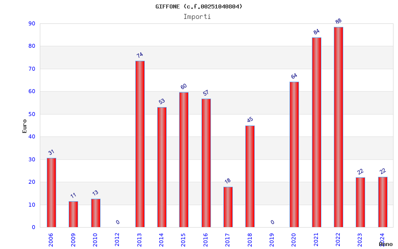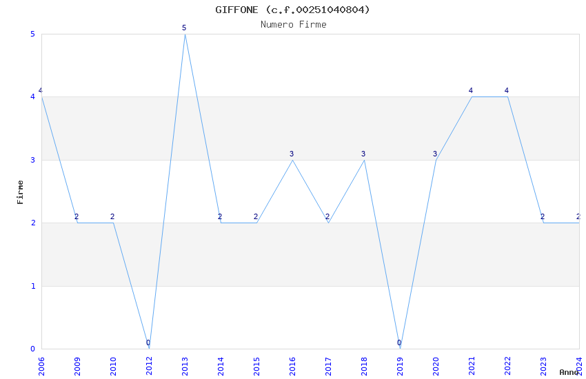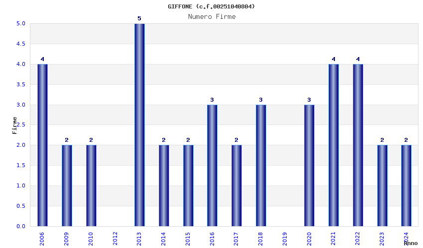 | Anno | Firme | Importi | Media | Naz. | Reg. | Prov. | Comu. |