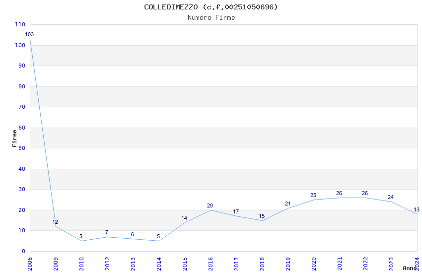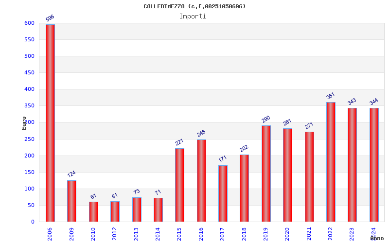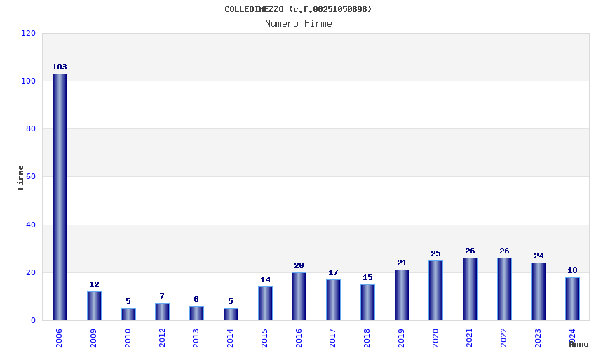 | Anno | Firme | Importi | Media | Naz. | Reg. | Prov. | Comu. |