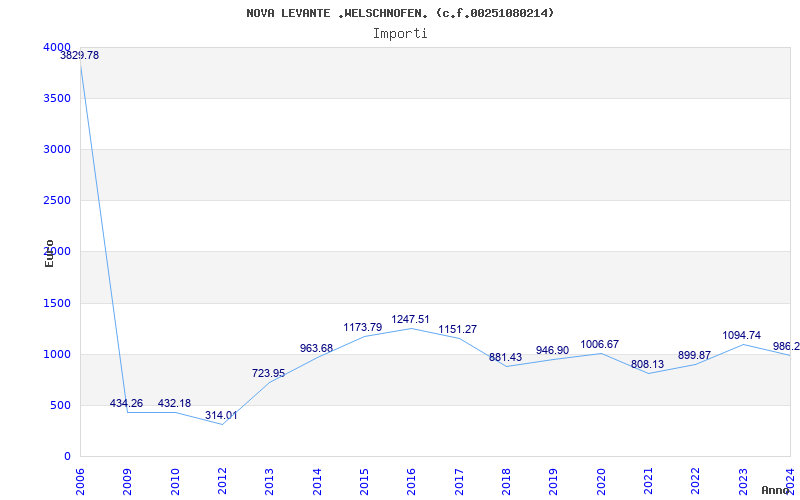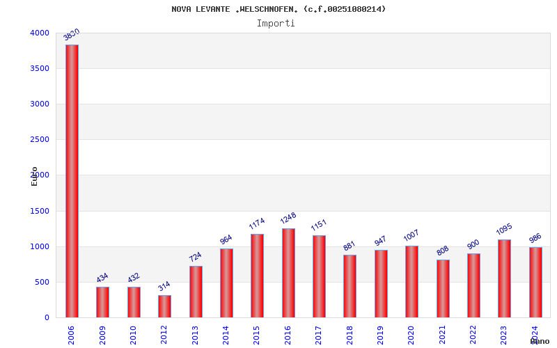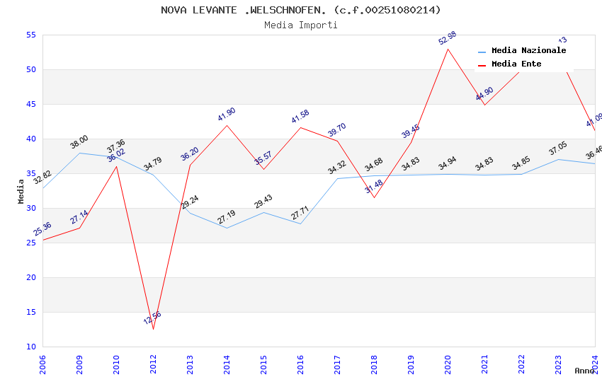 | Anno | Firme | Importi | Media | Naz. | Reg. | Prov. | Comu. |