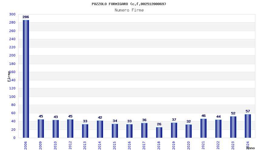| Anno | Firme | Importi | Media | Naz. | Reg. | Prov. | Comu. |