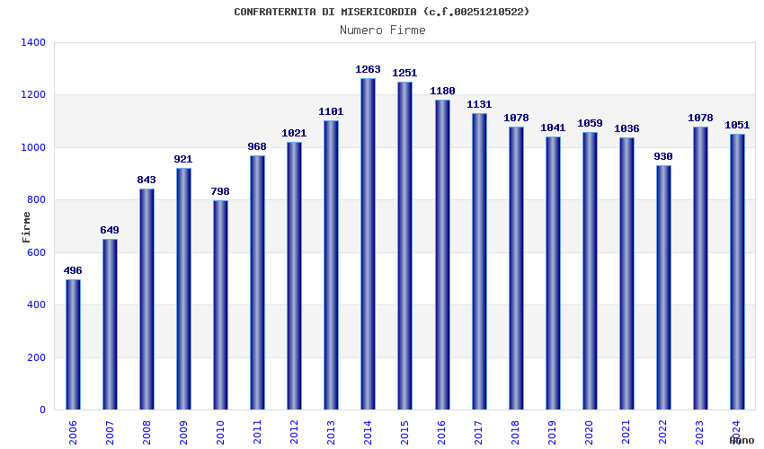 | Anno | Firme | Importi | Media | Naz. | Reg. | Prov. | Comu. |