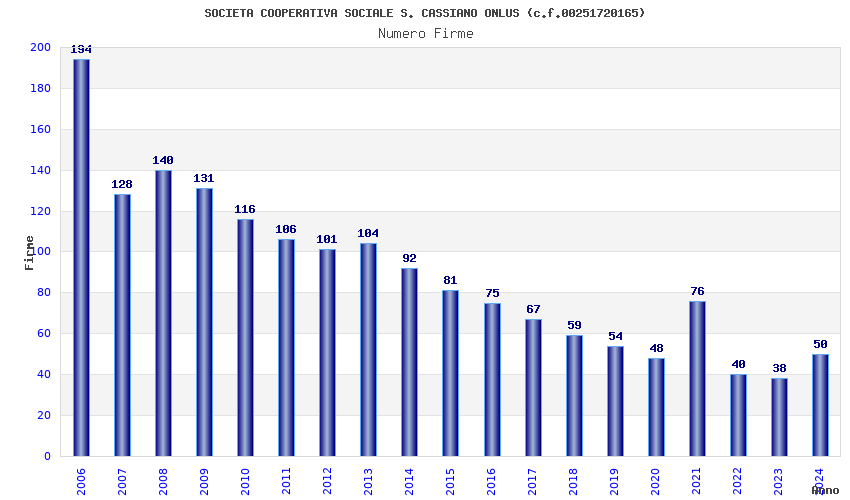 | Anno | Firme | Importi | Media | Naz. | Reg. | Prov. | Comu. |