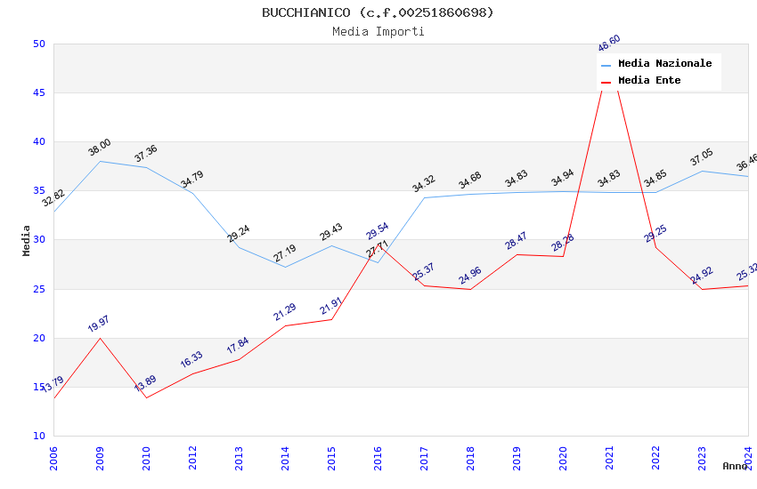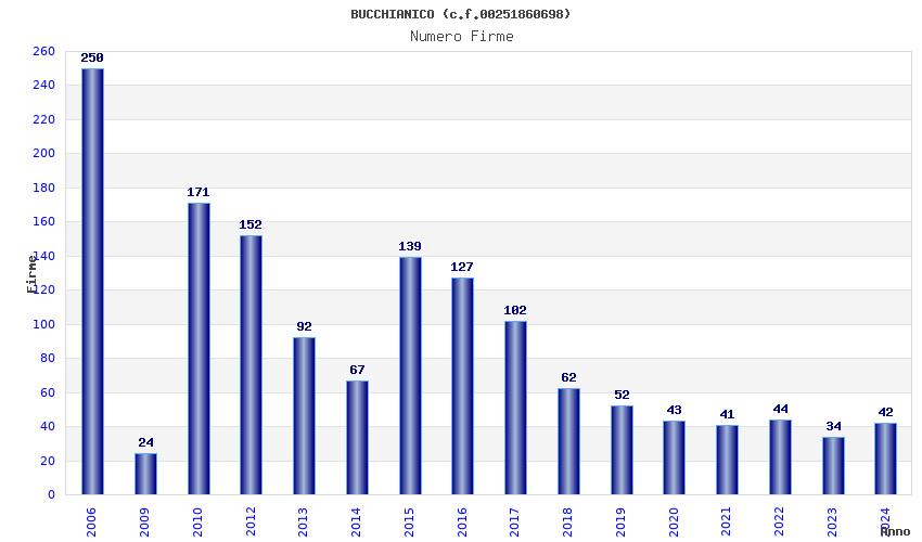 | Anno | Firme | Importi | Media | Naz. | Reg. | Prov. | Comu. |