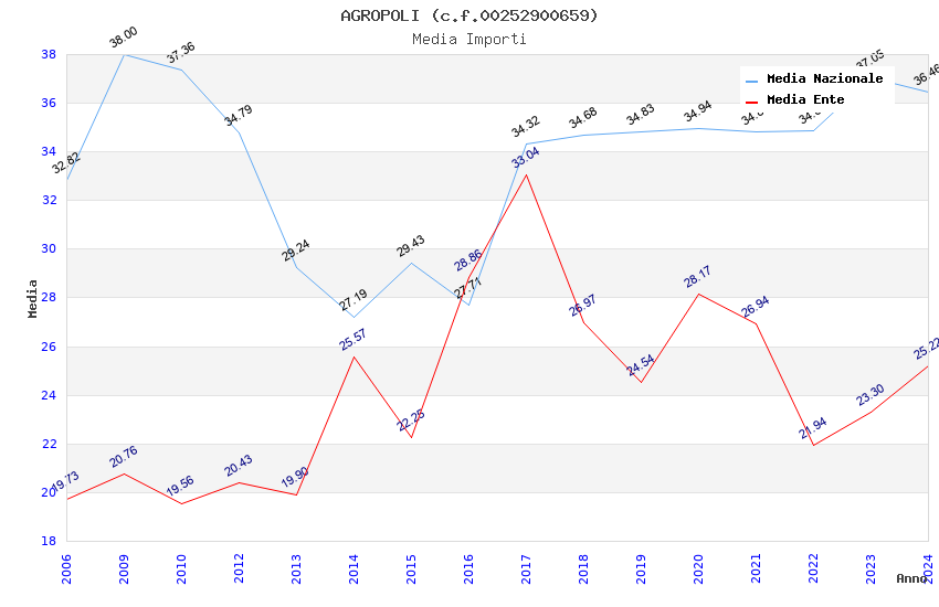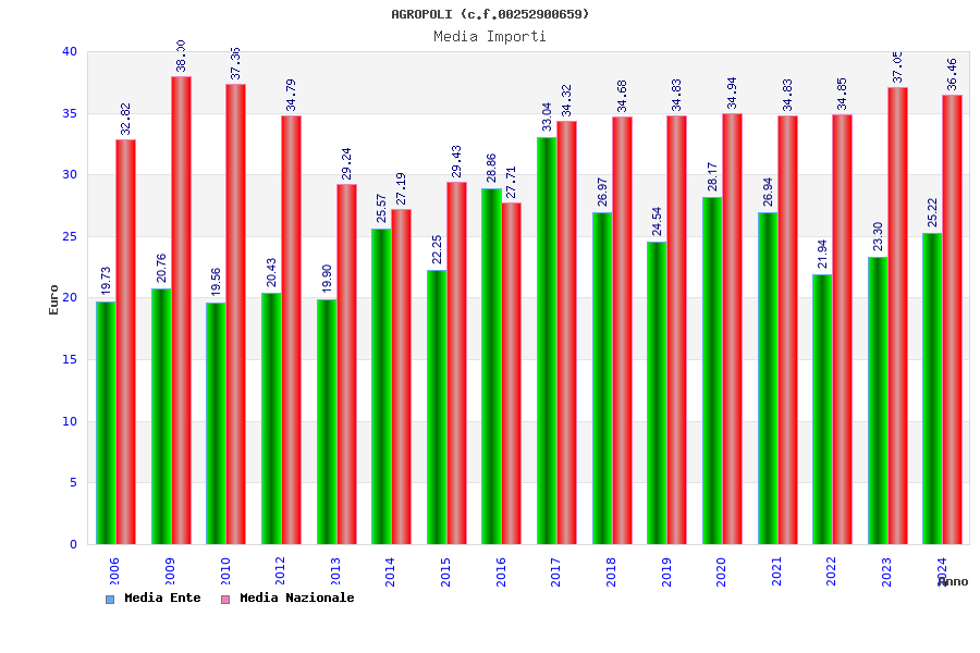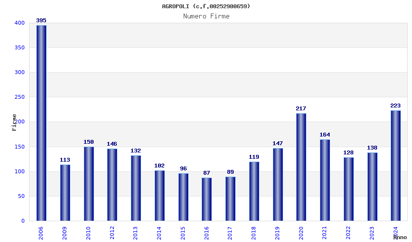 | Anno | Firme | Importi | Media | Naz. | Reg. | Prov. | Comu. |