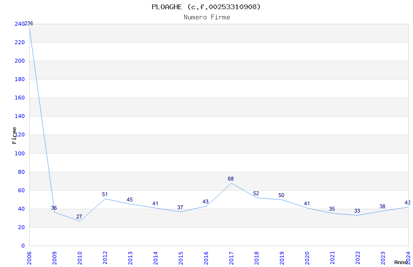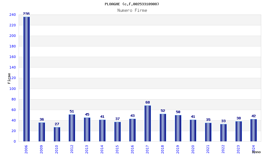 | 2006 | 236 | 3.693,71 | 15,65 | 10.390 | 174 | 42 | 3 |