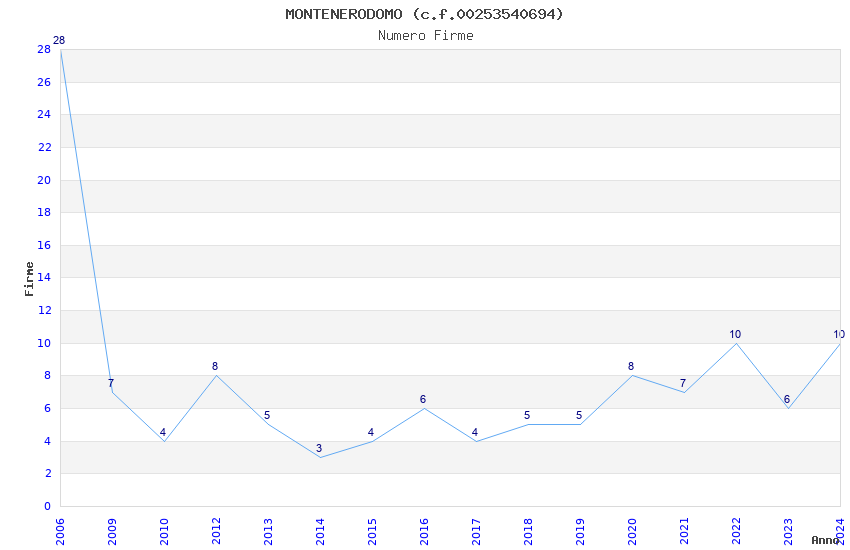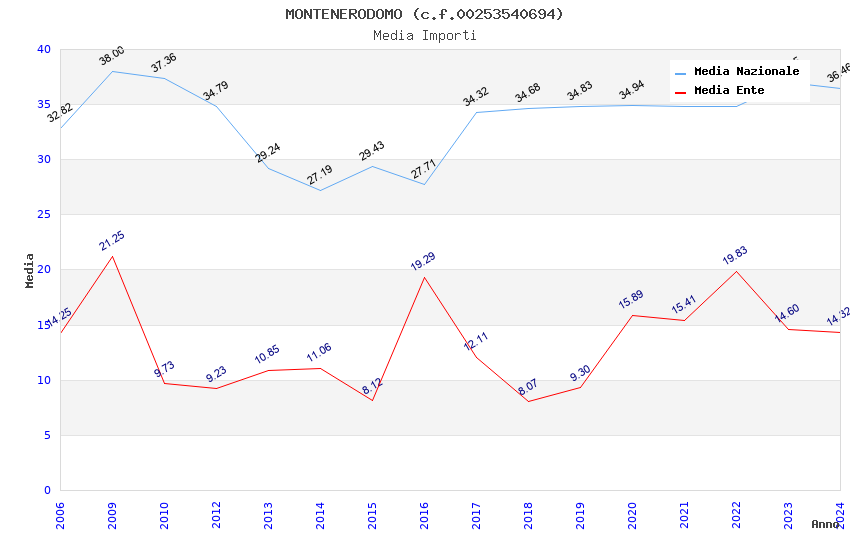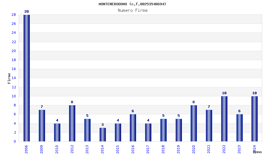 | Anno | Firme | Importi | Media | Naz. | Reg. | Prov. | Comu. |