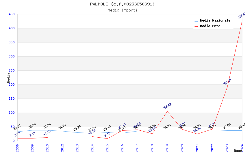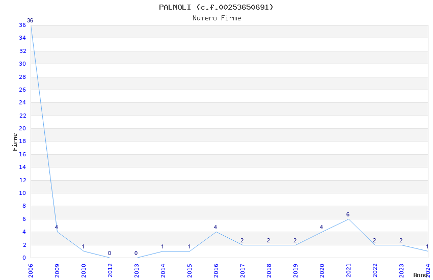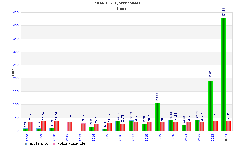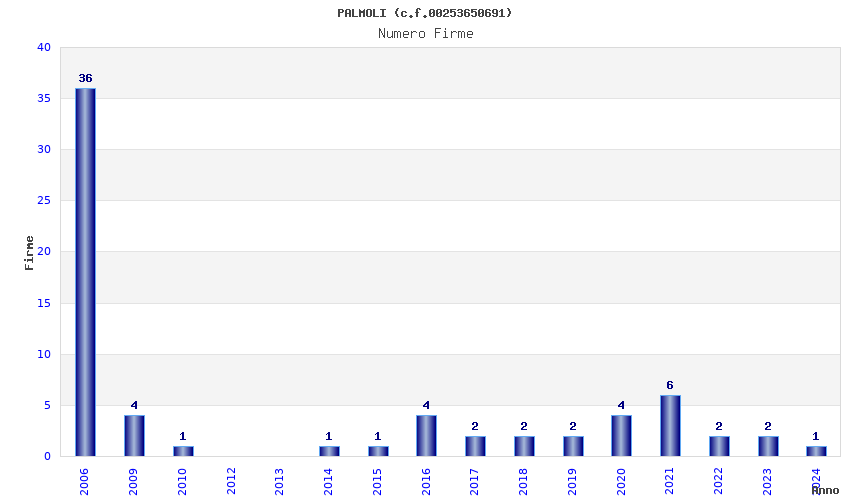 | Anno | Firme | Importi | Media | Naz. | Reg. | Prov. | Comu. |