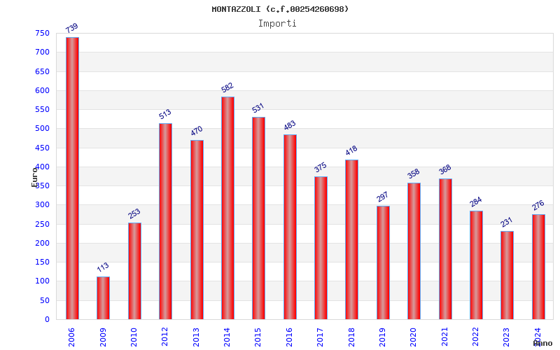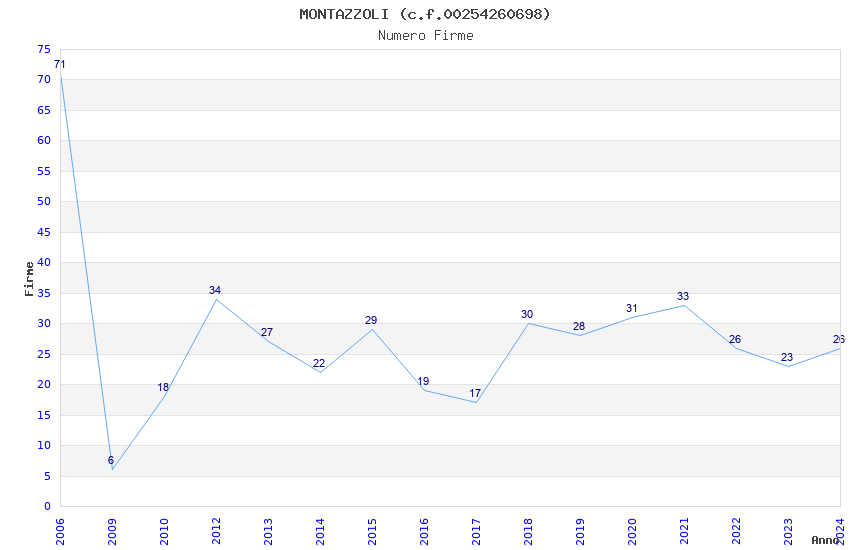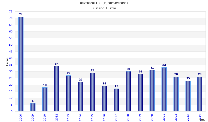 | Anno | Firme | Importi | Media | Naz. | Reg. | Prov. | Comu. |