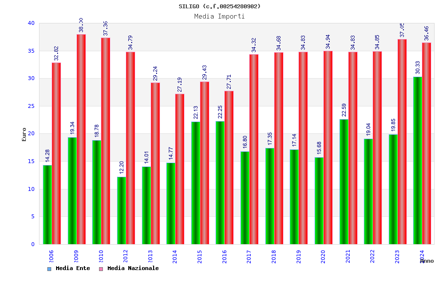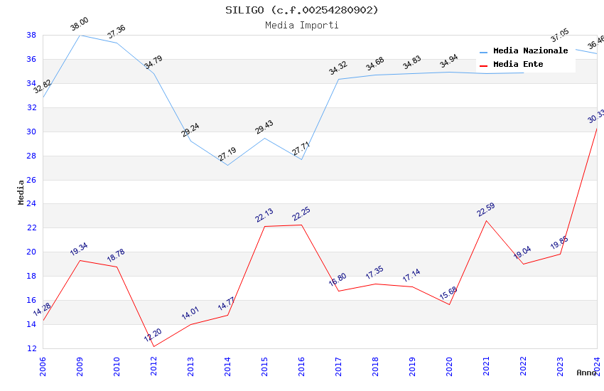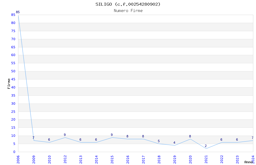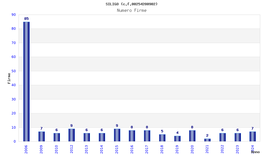 | Anno | Firme | Importi | Media | Naz. | Reg. | Prov. | Comu. |