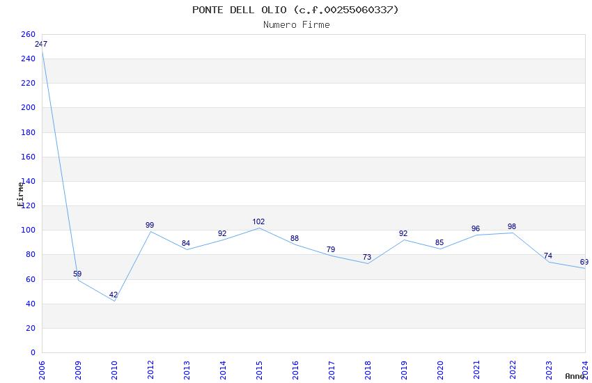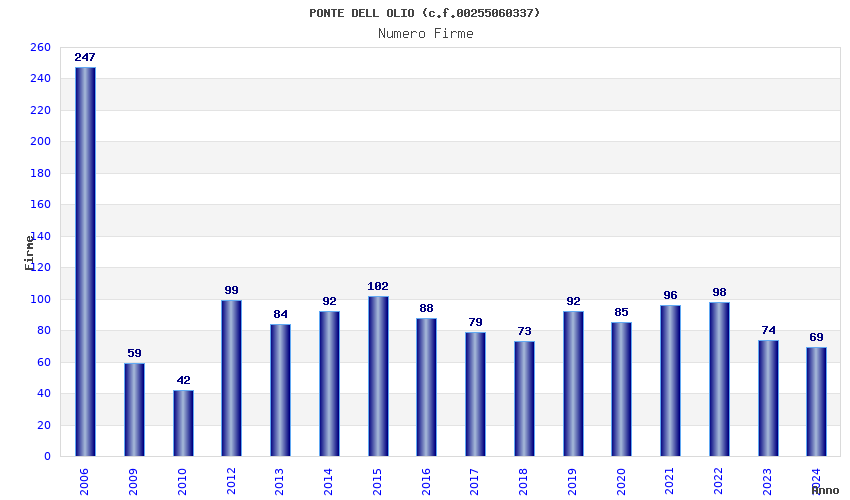| 2024 | 69 | 1.873,28 | 27,15 | 25.246 | 2.186 | 147 | 4 |