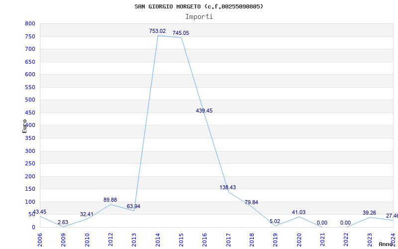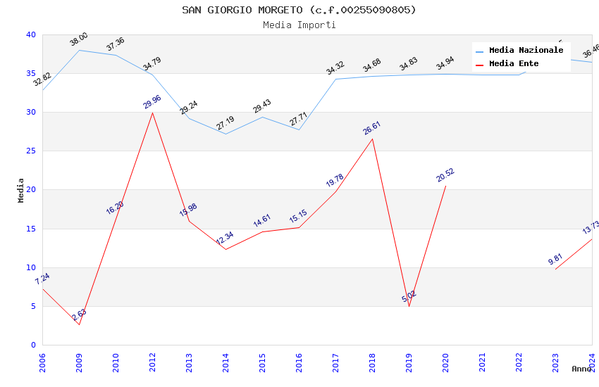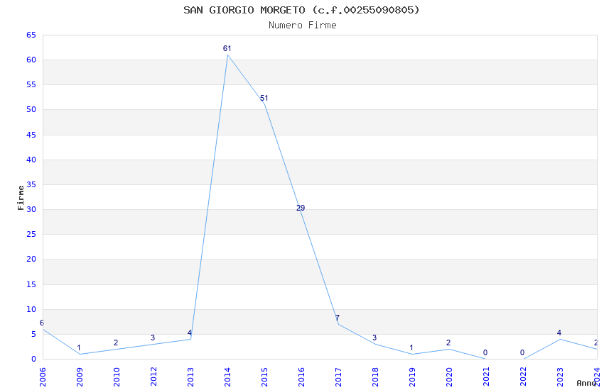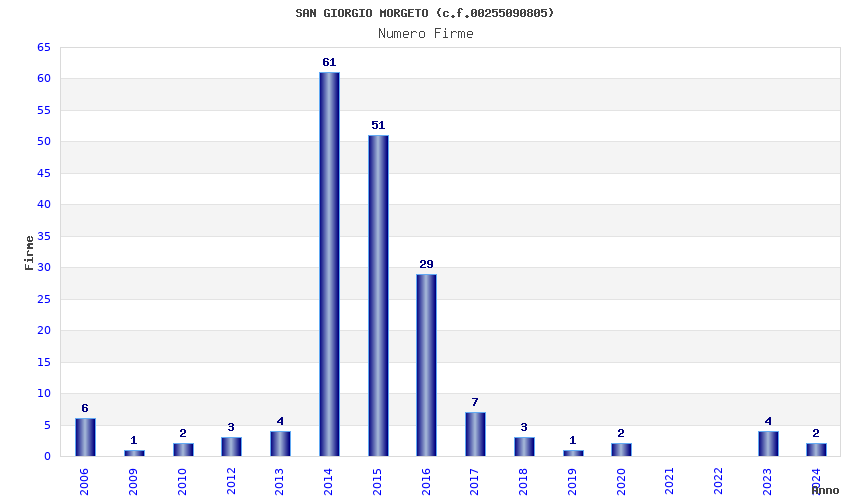 | Anno | Firme | Importi | Media | Naz. | Reg. | Prov. | Comu. |