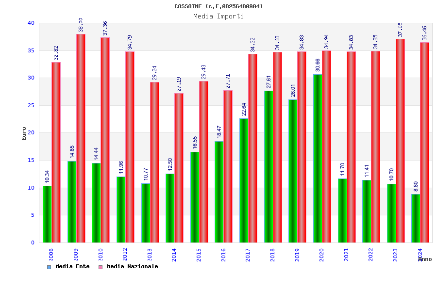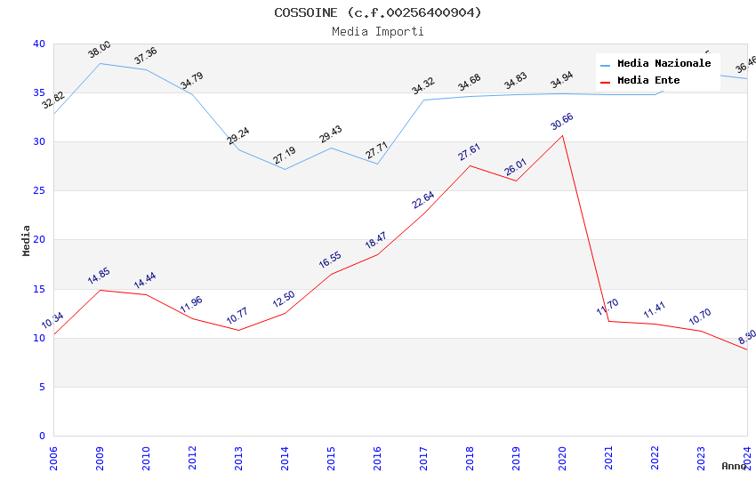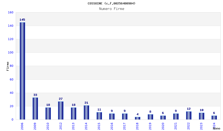 | Anno | Firme | Importi | Media | Naz. | Reg. | Prov. | Comu. |