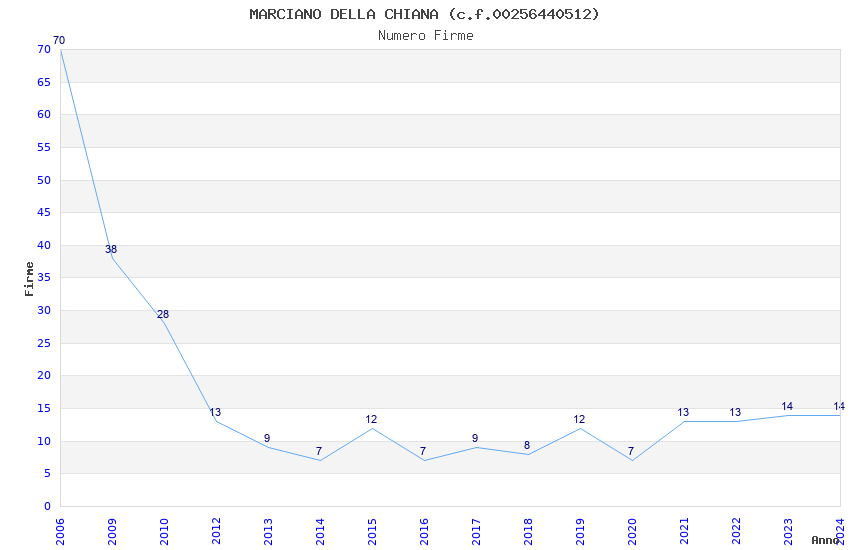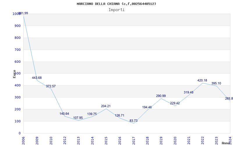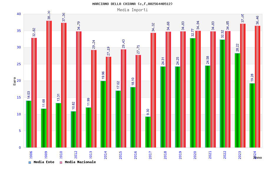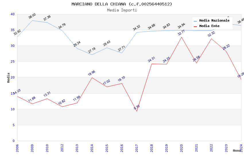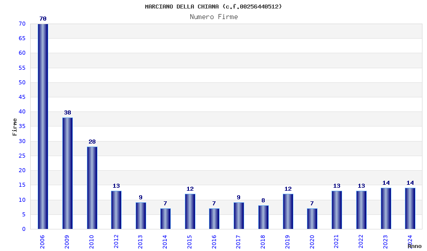 | Anno | Firme | Importi | Media | Naz. | Reg. | Prov. | Comu. |