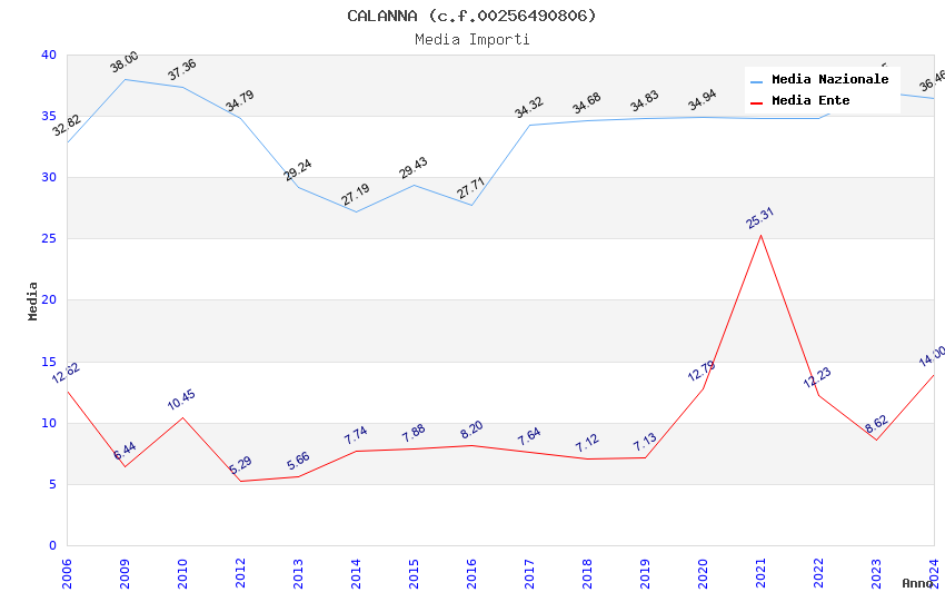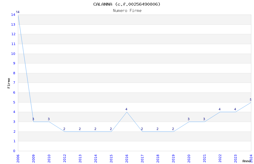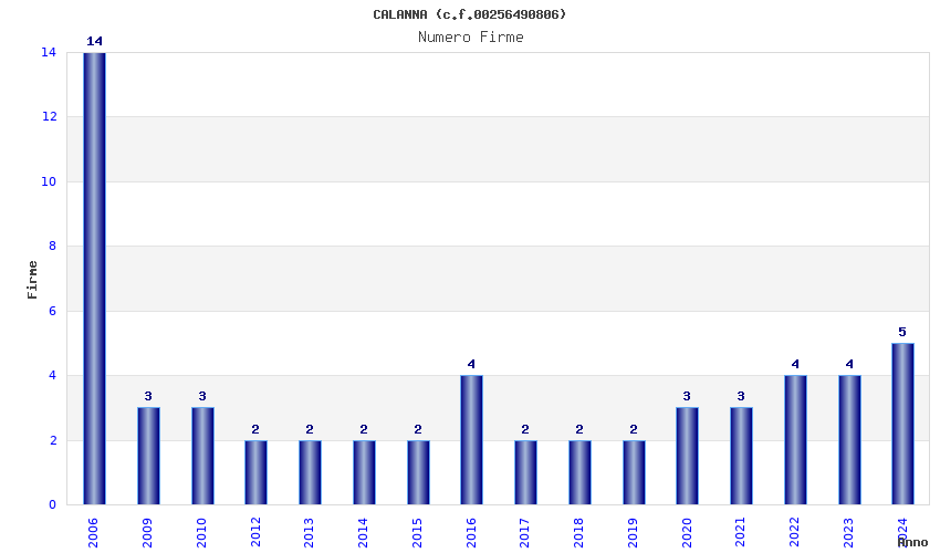 | Anno | Firme | Importi | Media | Naz. | Reg. | Prov. | Comu. |