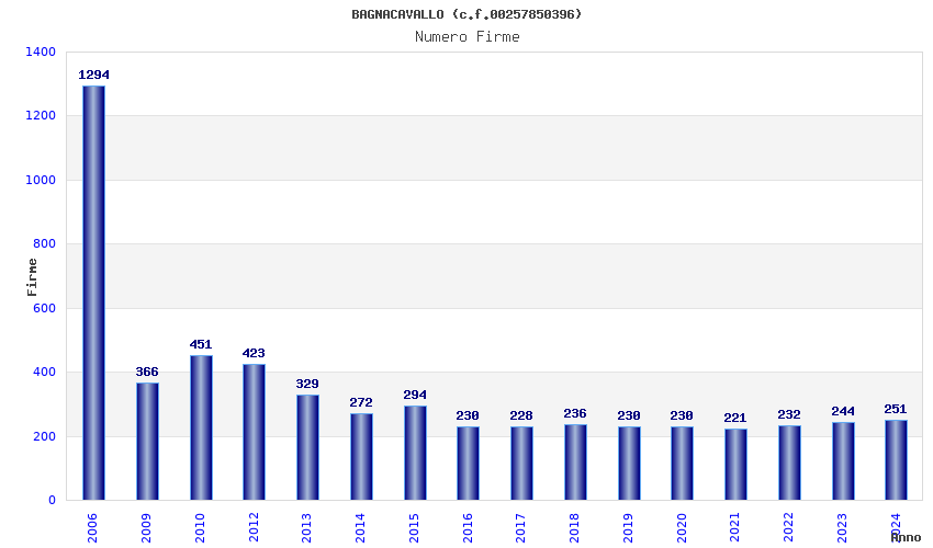 | Anno | Firme | Importi | Media | Naz. | Reg. | Prov. | Comu. |