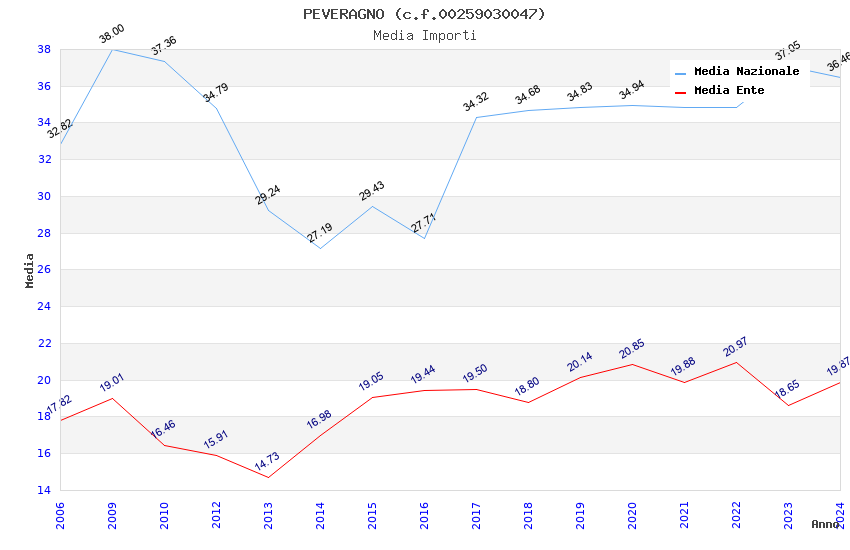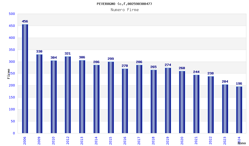 | Anno | Firme | Importi | Media | Naz. | Reg. | Prov. | Comu. |