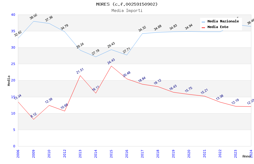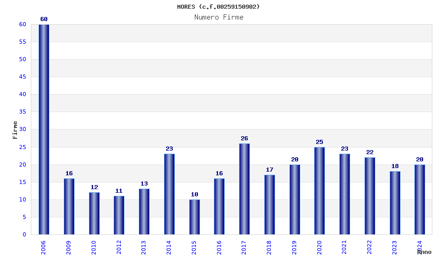 | Anno | Firme | Importi | Media | Naz. | Reg. | Prov. | Comu. |