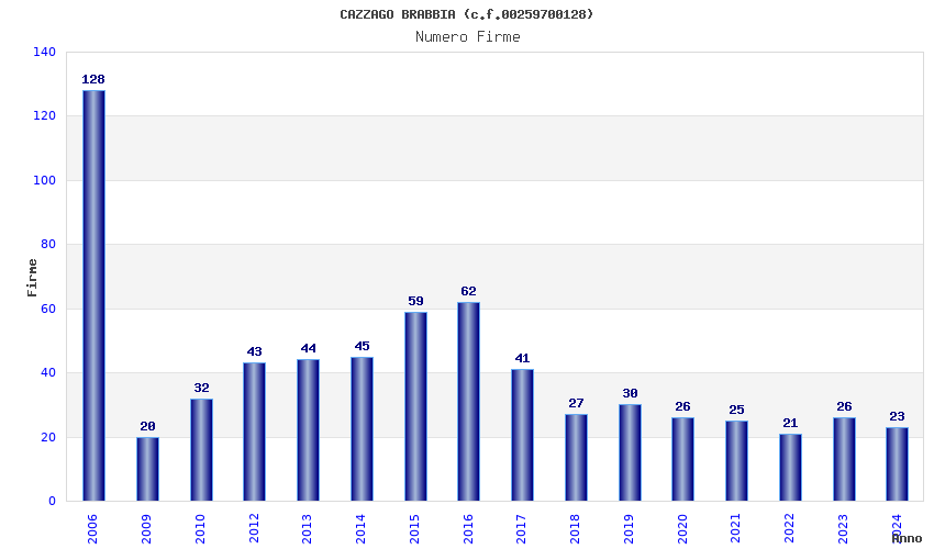 | Anno | Firme | Importi | Media | Naz. | Reg. | Prov. | Comu. |