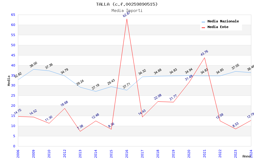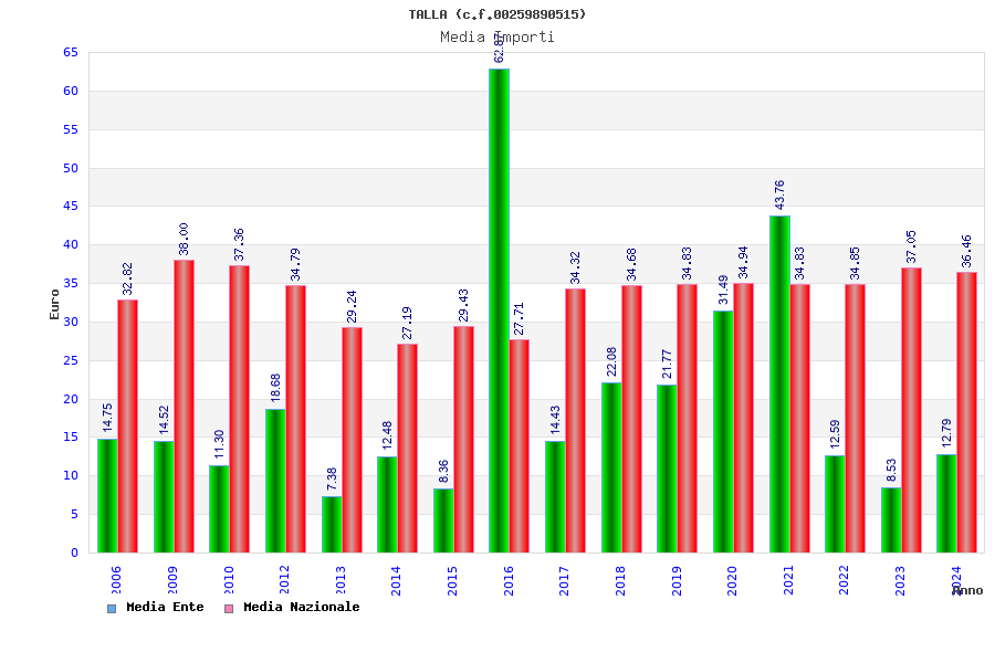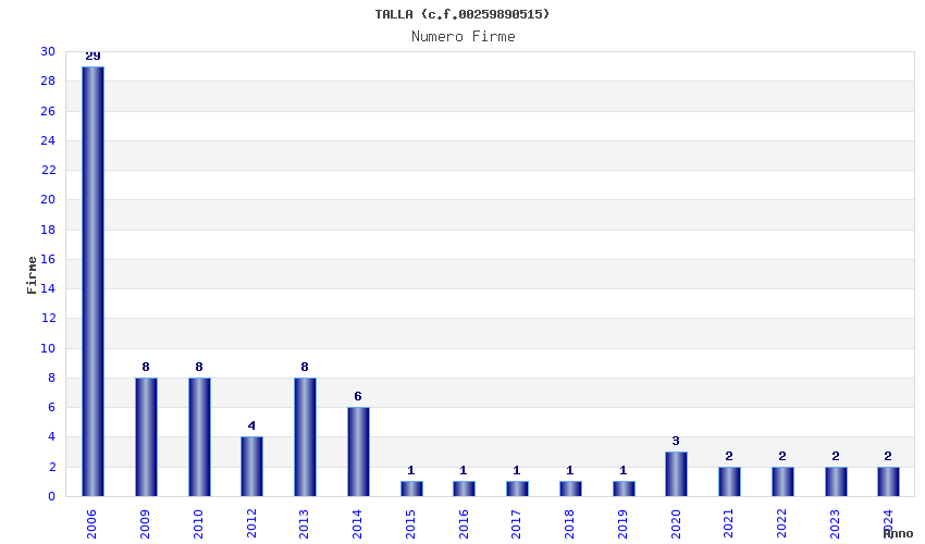 | Anno | Firme | Importi | Media | Naz. | Reg. | Prov. | Comu. |