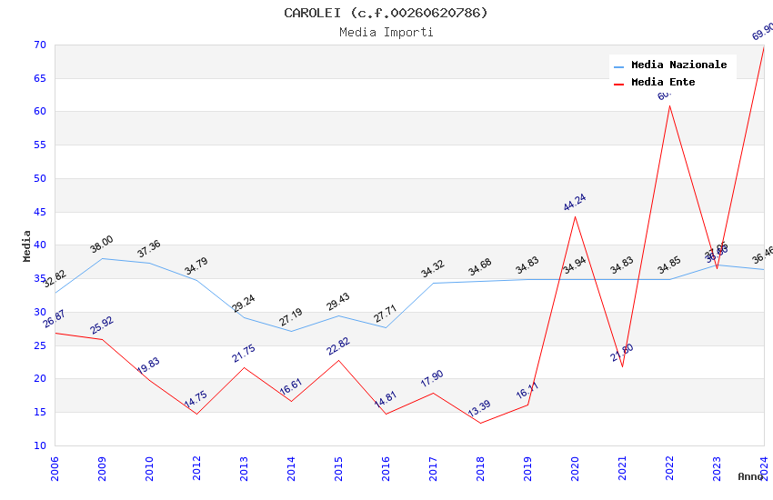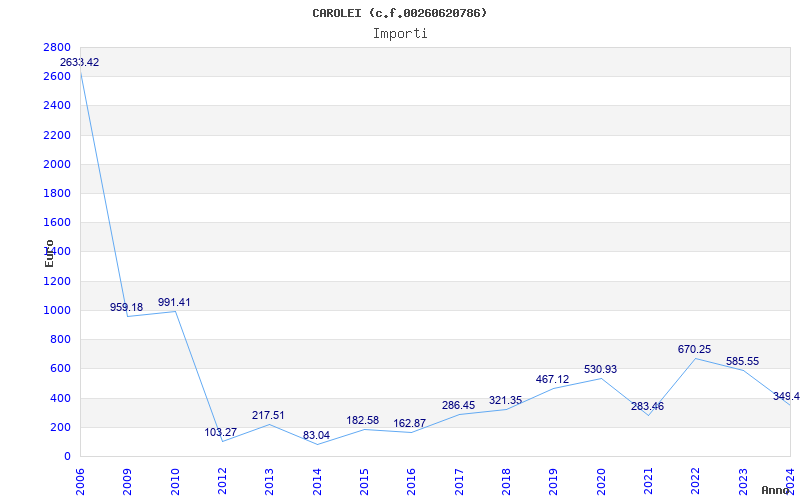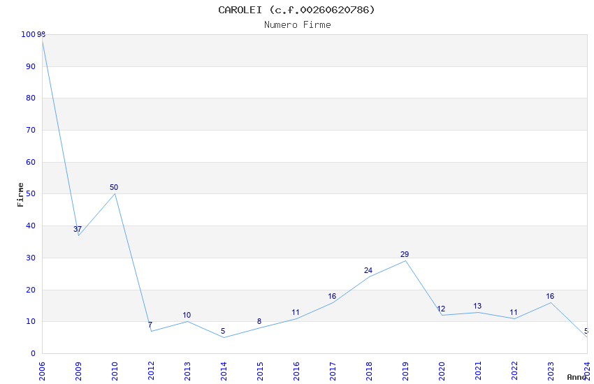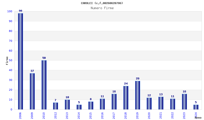 | Anno | Firme | Importi | Media | Naz. | Reg. | Prov. | Comu. |