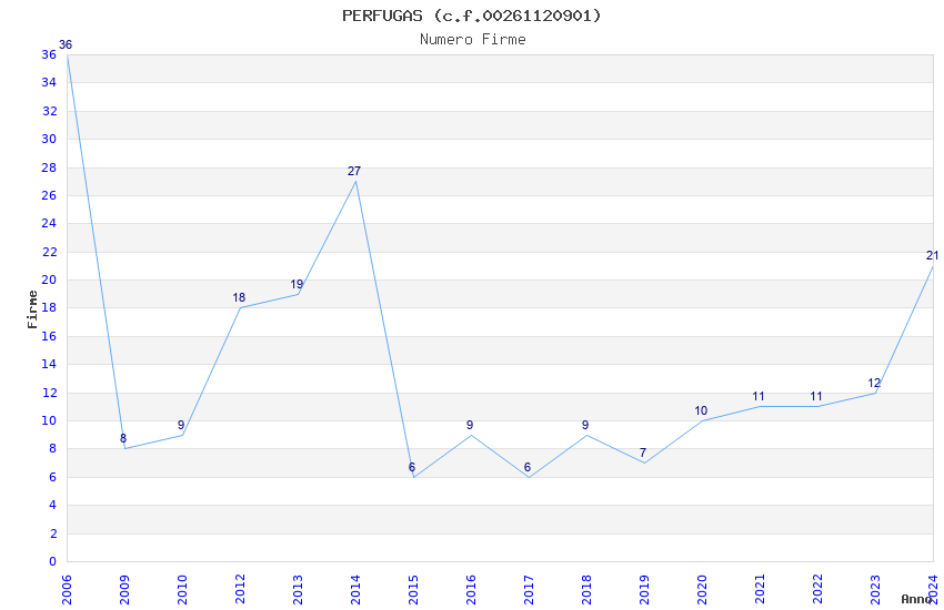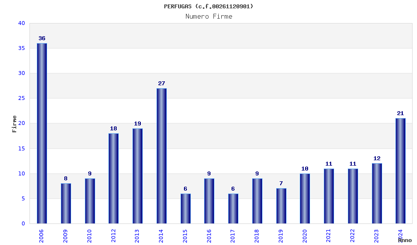 | Anno | Firme | Importi | Media | Naz. | Reg. | Prov. | Comu. |