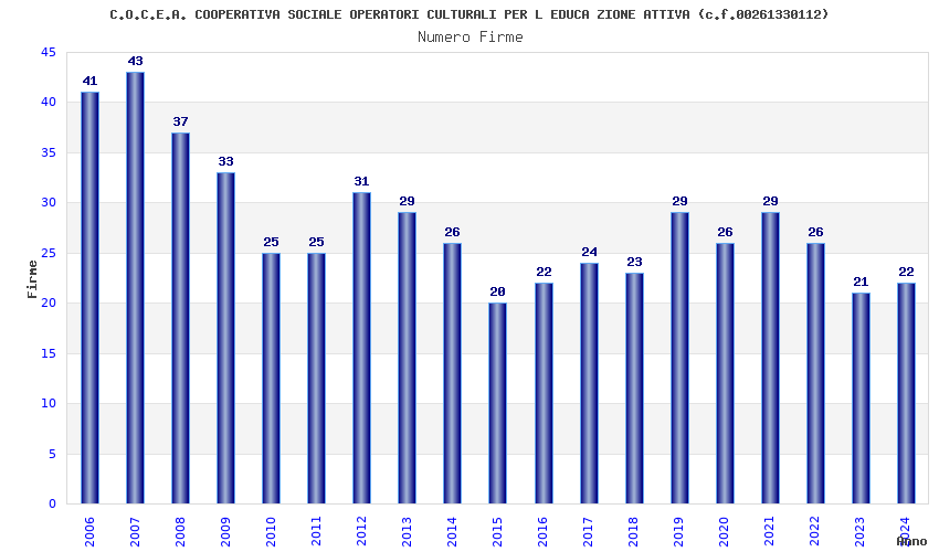 | Anno | Firme | Importi | Media | Naz. | Reg. | Prov. | Comu. |