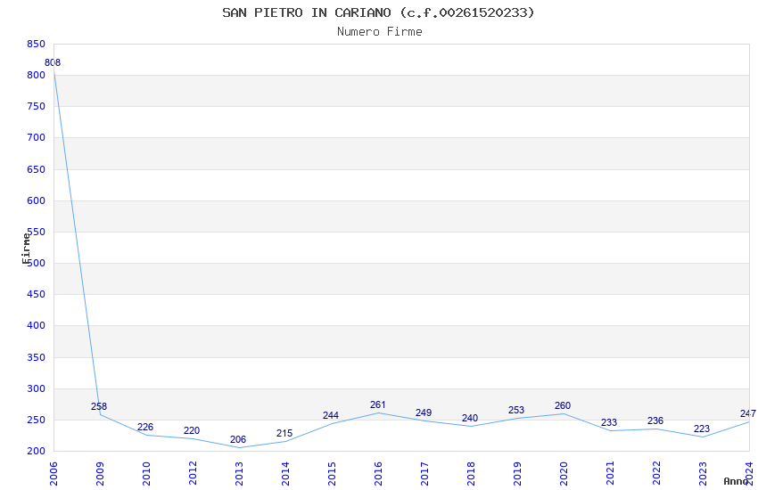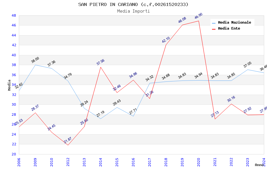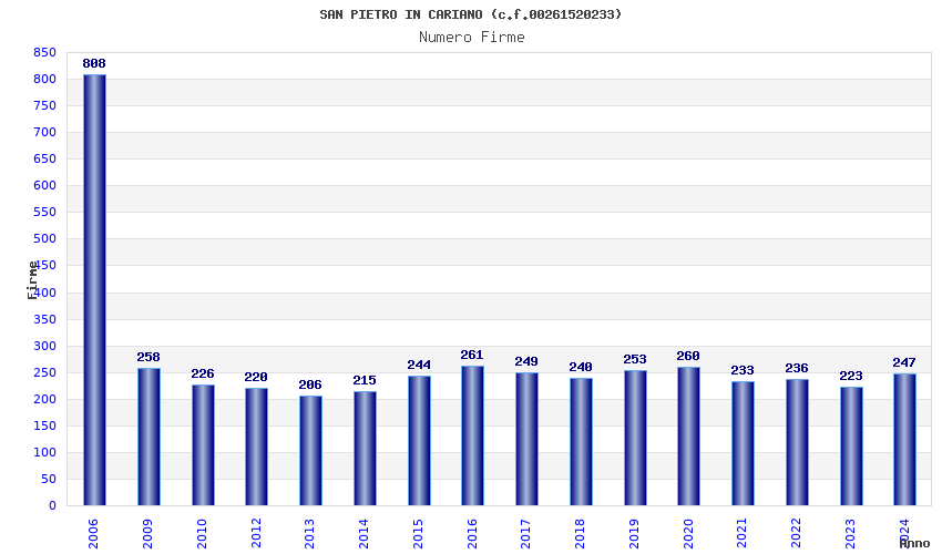 | Anno | Firme | Importi | Media | Naz. | Reg. | Prov. | Comu. |