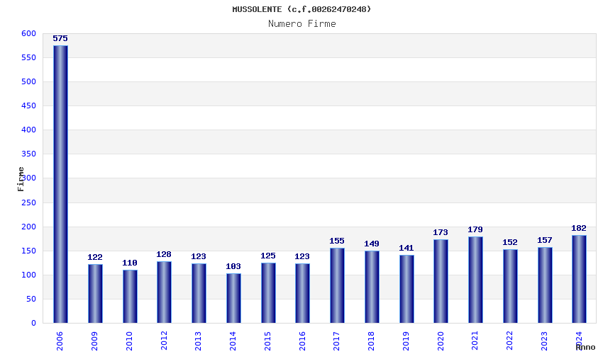 Anno Firme Importi Media Naz. Reg. Prov. Comu.