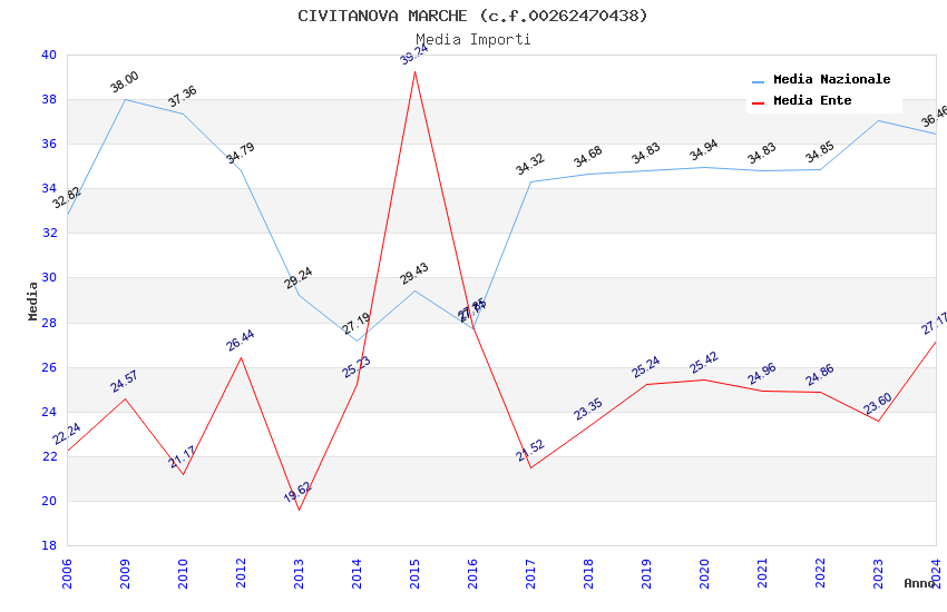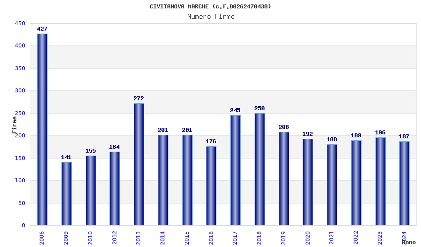 | Anno | Firme | Importi | Media | Naz. | Reg. | Prov. | Comu. |