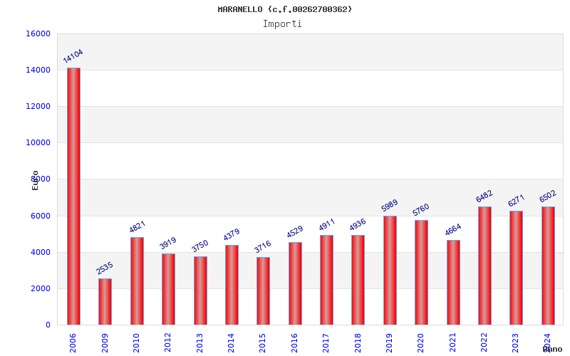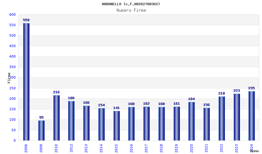 | Anno | Firme | Importi | Media | Naz. | Reg. | Prov. | Comu. |