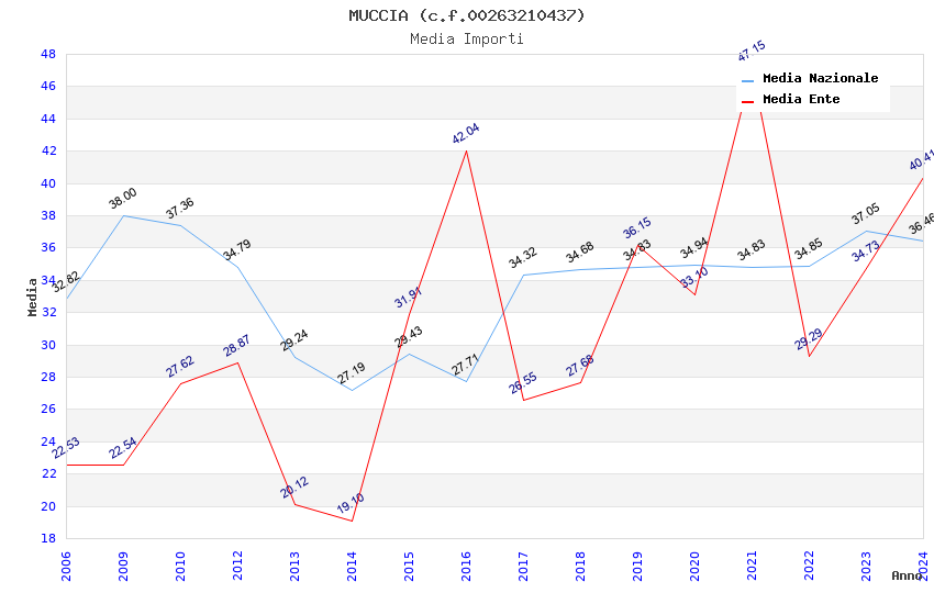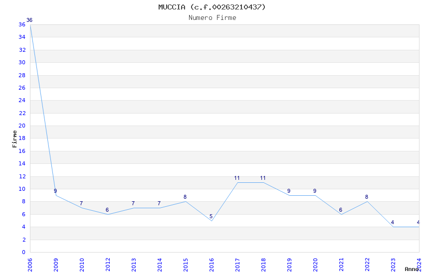 | Anno | Firme | Importi | Media | Naz. | Reg. | Prov. | Comu. |