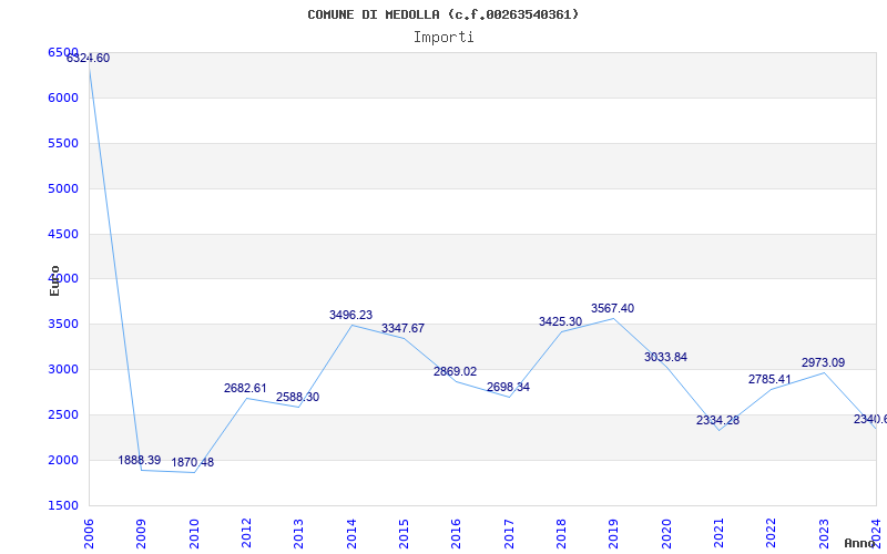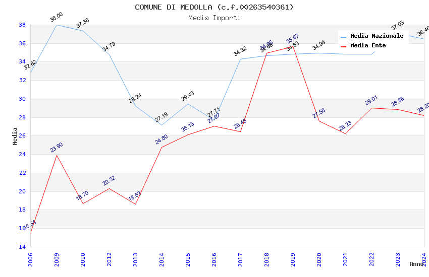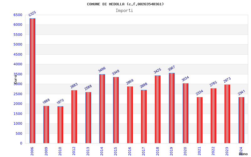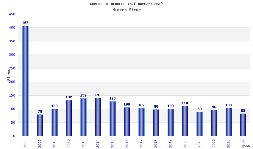 | Anno | Firme | Importi | Media | Naz. | Reg. | Prov. | Comu. |