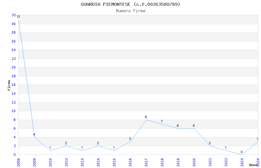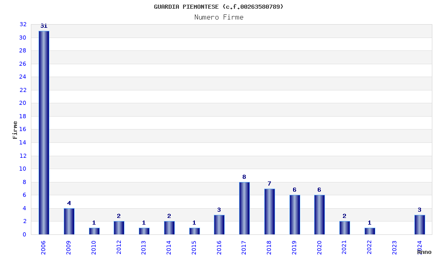 | Anno | Firme | Importi | Media | Naz. | Reg. | Prov. | Comu. |
