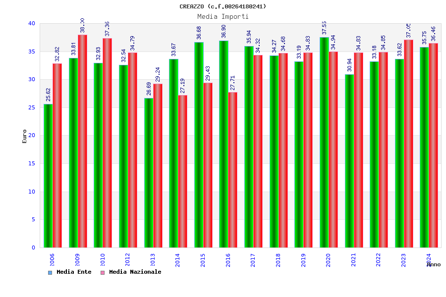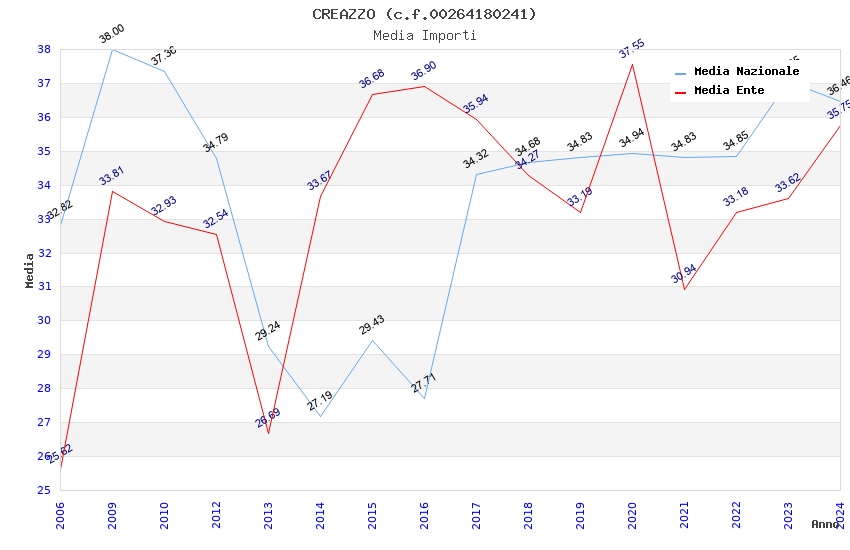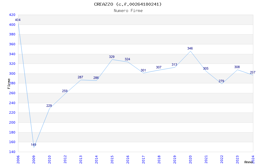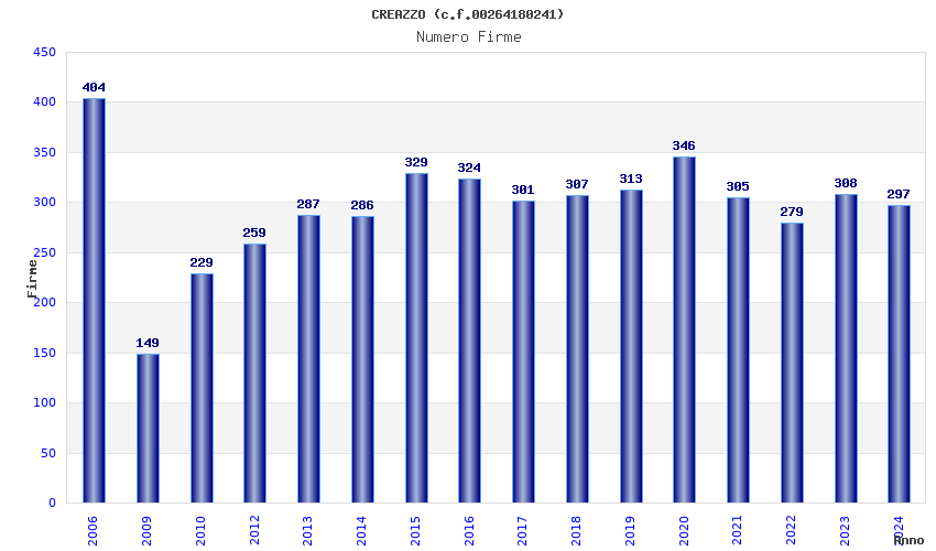 | Anno | Firme | Importi | Media | Naz. | Reg. | Prov. | Comu. |