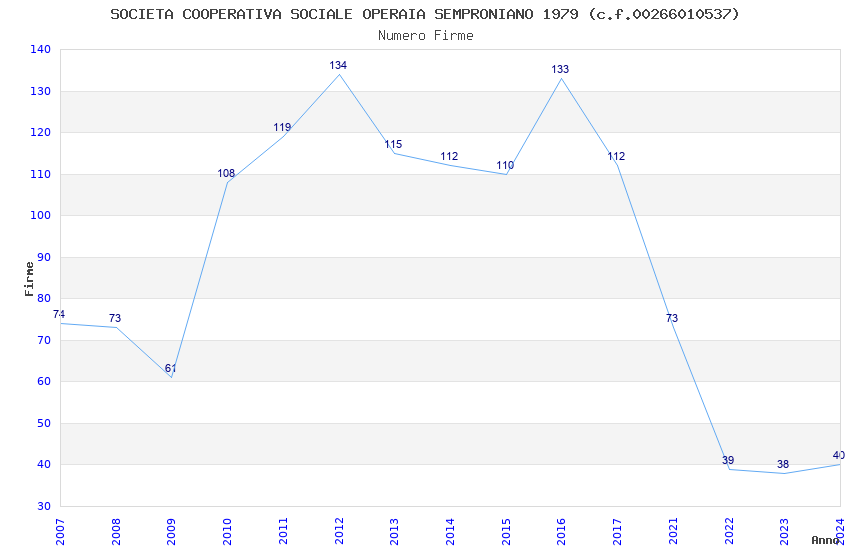 | 2016 | 133 | 3.605,89 | 27,11 | 14.796 | 916 | 32 | 1 |