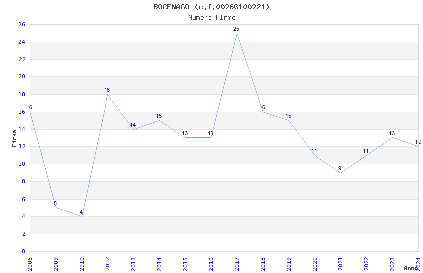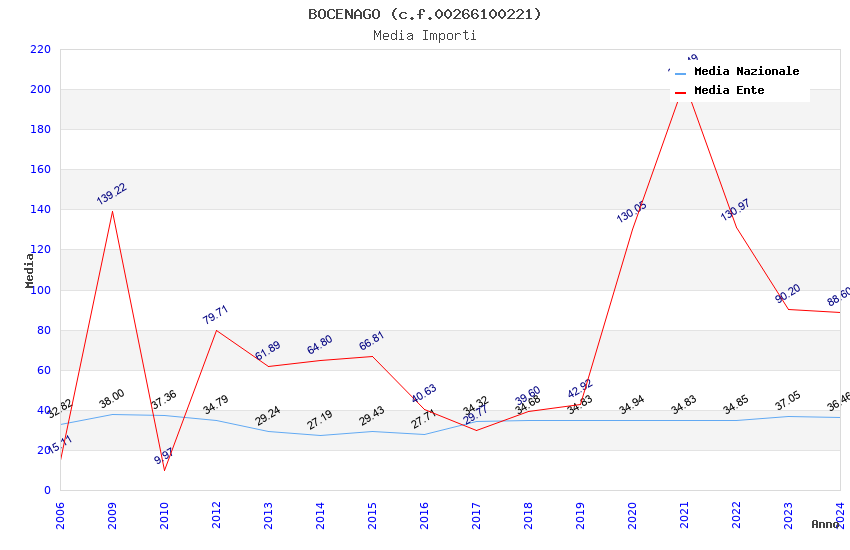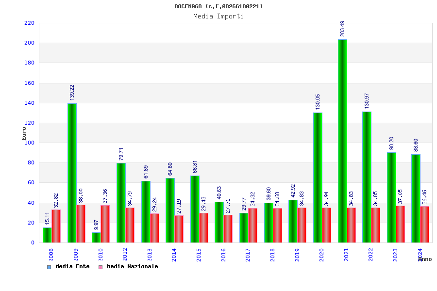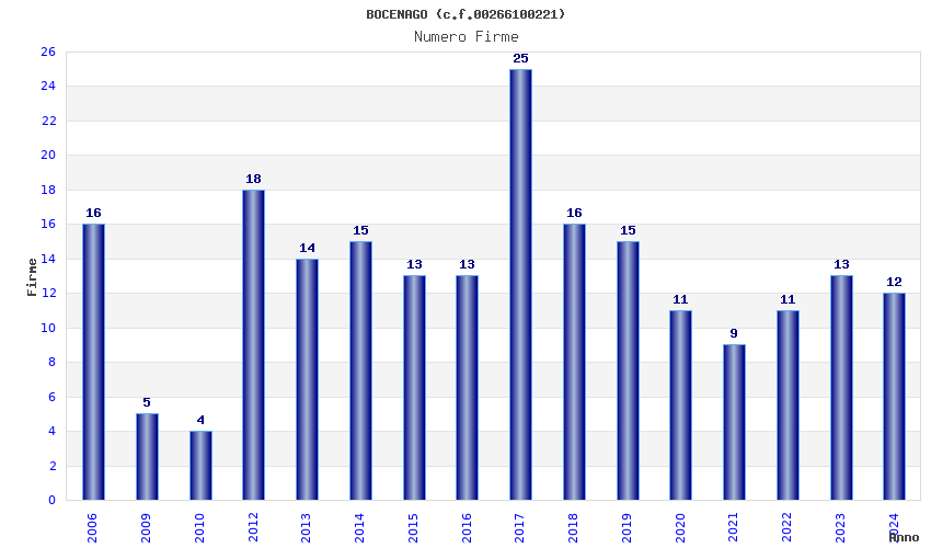 | Anno | Firme | Importi | Media | Naz. | Reg. | Prov. | Comu. |