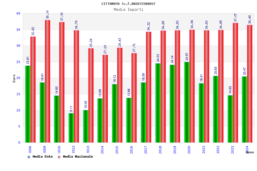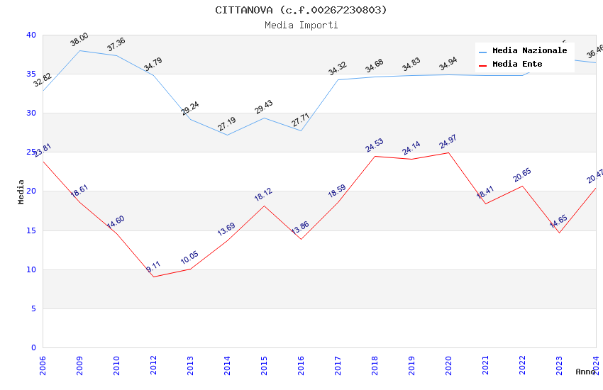 | Anno | Firme | Importi | Media | Naz. | Reg. | Prov. | Comu. |