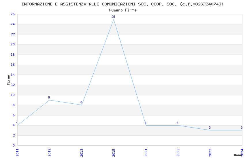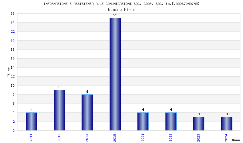 | Anno | Firme | Importi | Media | Naz. | Reg. | Prov. | Comu. |