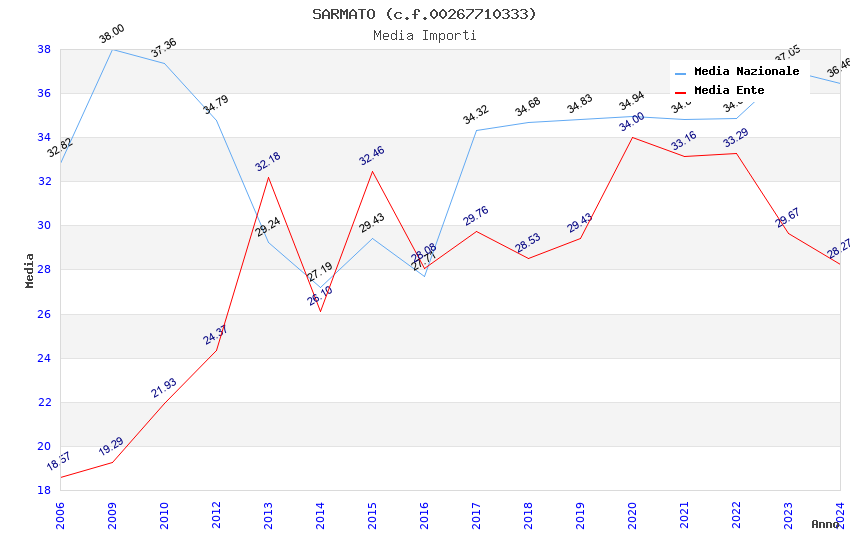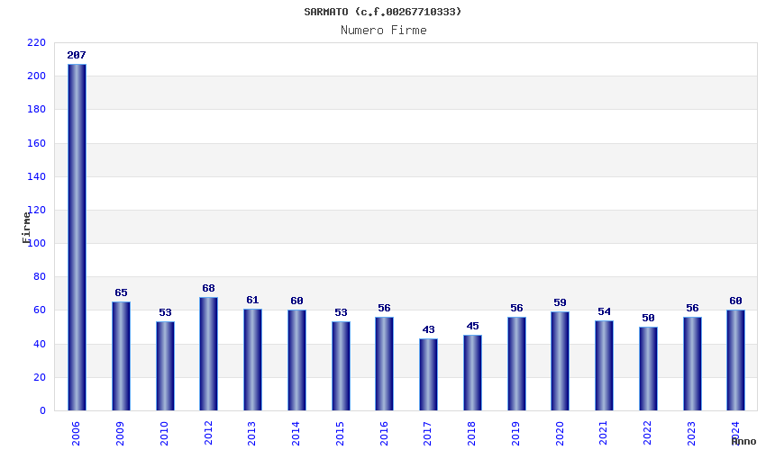 | Anno | Firme | Importi | Media | Naz. | Reg. | Prov. | Comu. |
