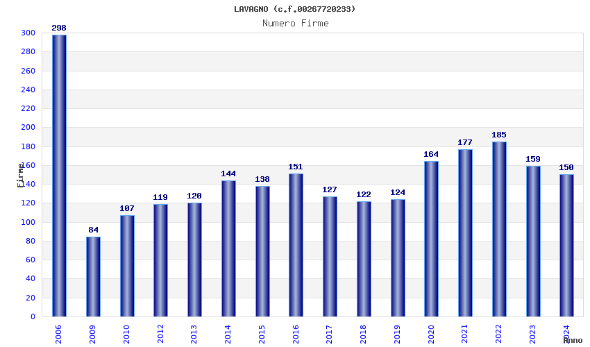 | Anno | Firme | Importi | Media | Naz. | Reg. | Prov. | Comu. |