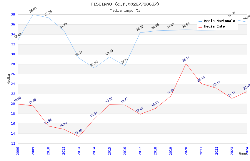 | Anno | Firme | Importi | Media | Naz. | Reg. | Prov. | Comu. |