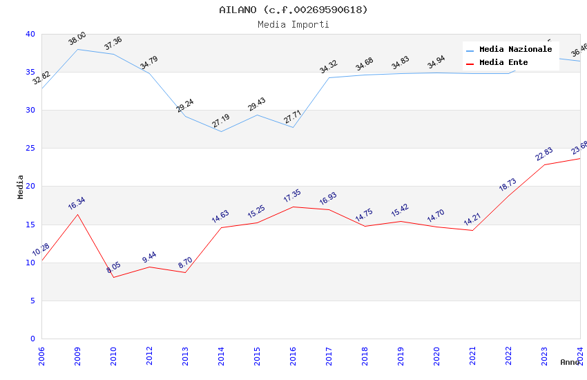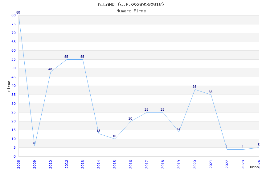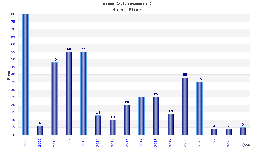 | Anno | Firme | Importi | Media | Naz. | Reg. | Prov. | Comu. |