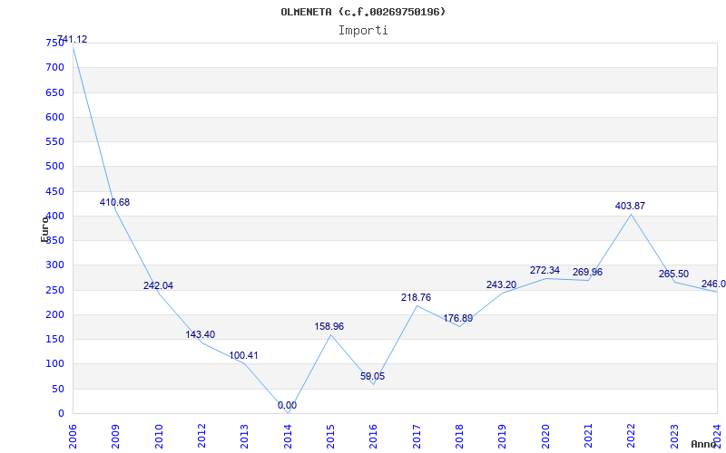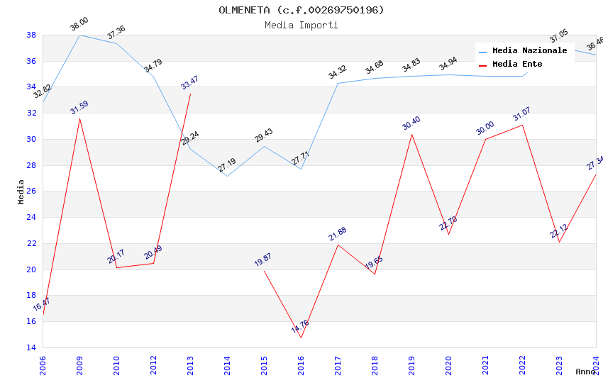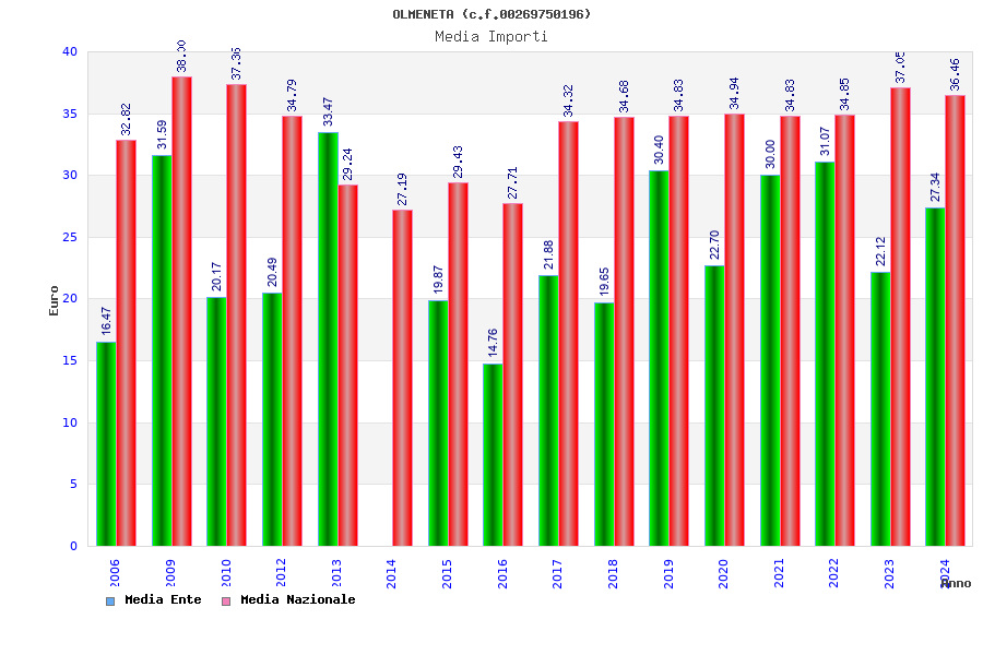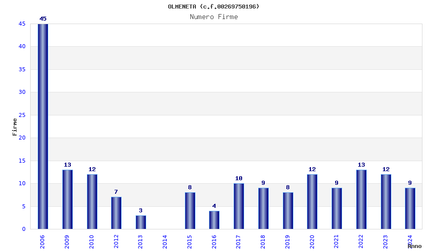 | Anno | Firme | Importi | Media | Naz. | Reg. | Prov. | Comu. |