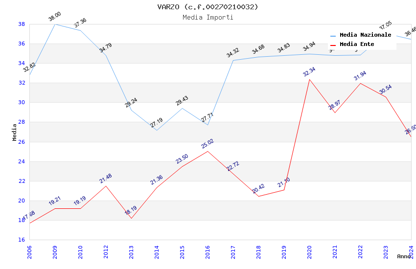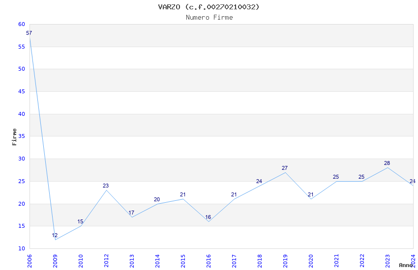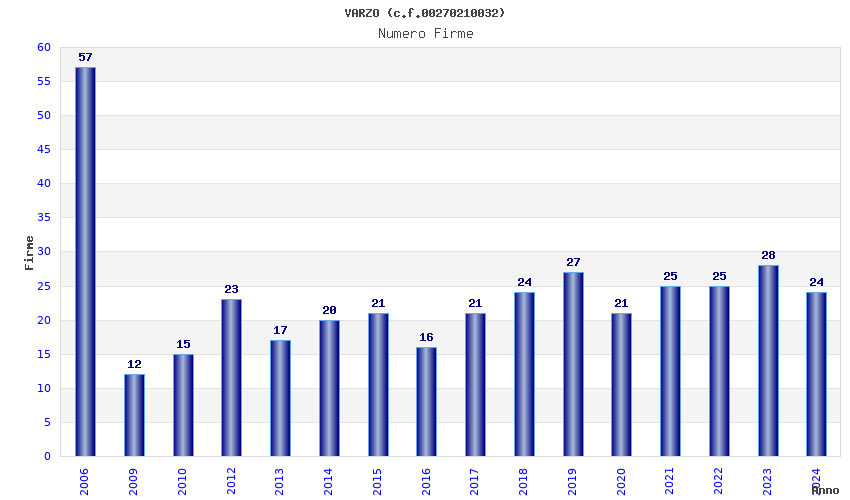 | Anno | Firme | Importi | Media | Naz. | Reg. | Prov. | Comu. |