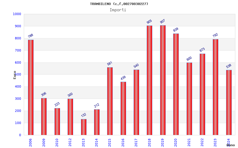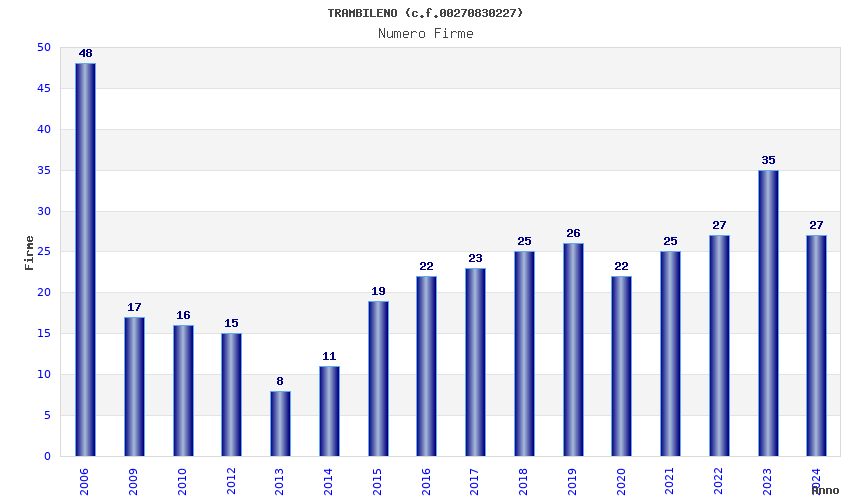 | Anno | Firme | Importi | Media | Naz. | Reg. | Prov. | Comu. |