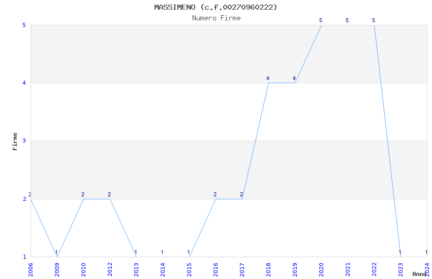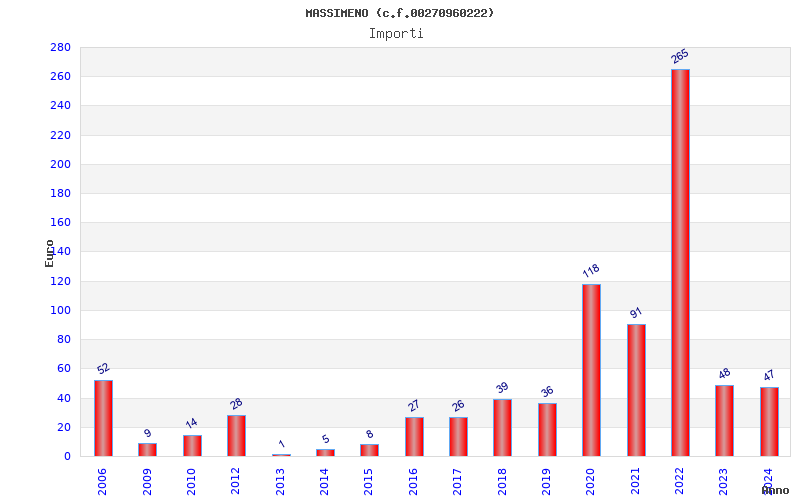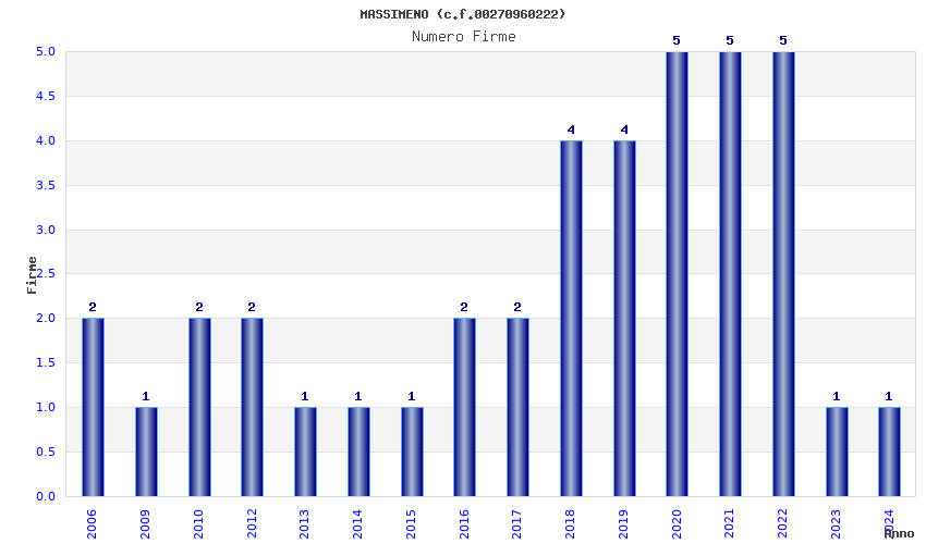 | Anno | Firme | Importi | Media | Naz. | Reg. | Prov. | Comu. |