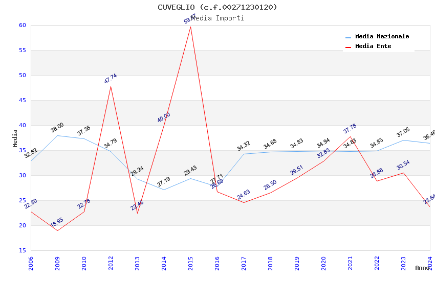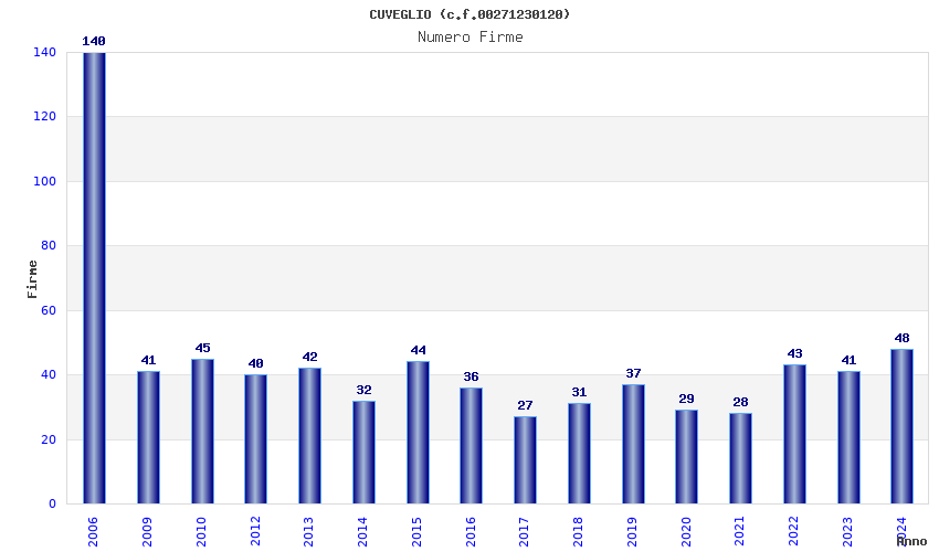 | Anno | Firme | Importi | Media | Naz. | Reg. | Prov. | Comu. |