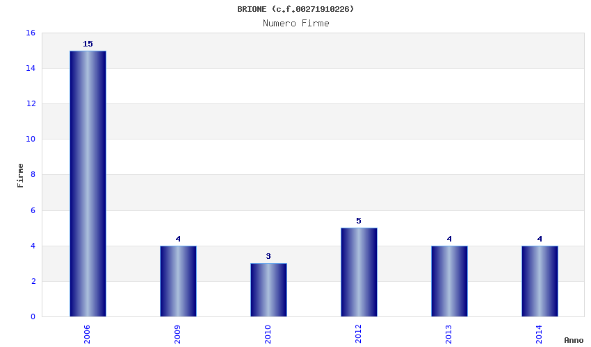 | Anno | Firme | Importi | Media | Naz. | Reg. | Prov. | Comu. |