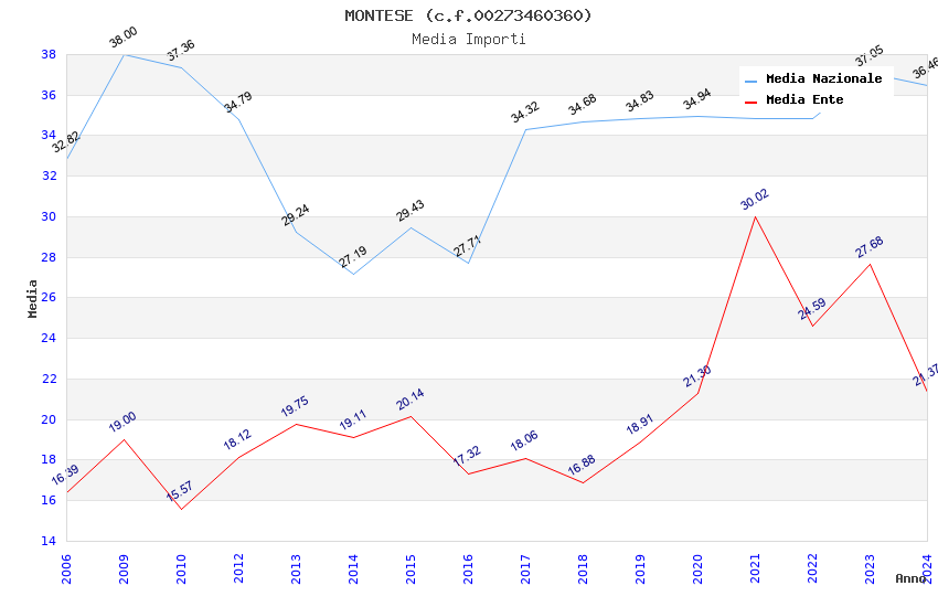 | Anno | Firme | Importi | Media | Naz. | Reg. | Prov. | Comu. |