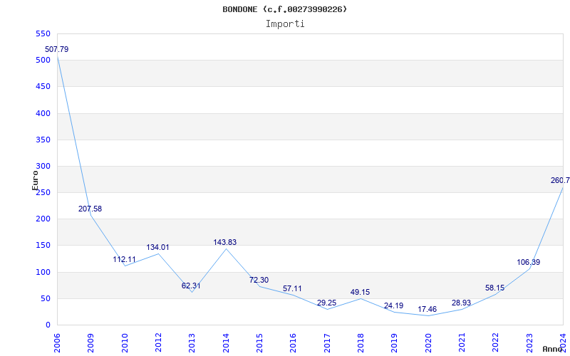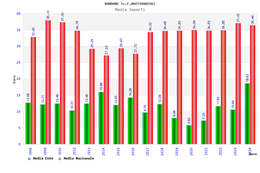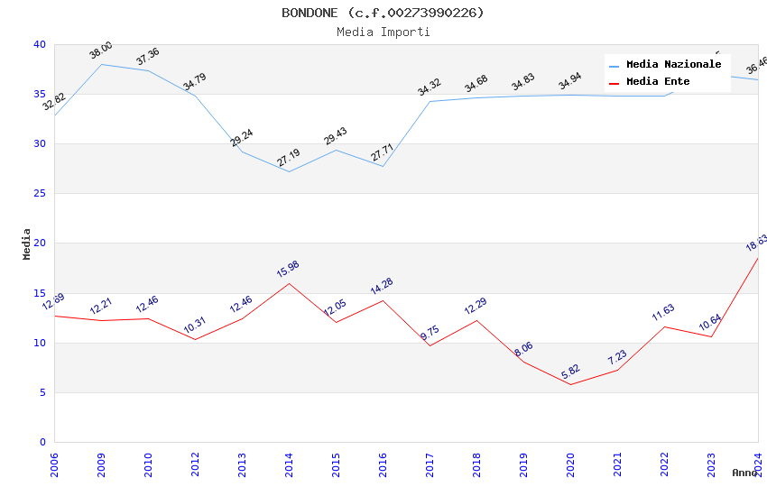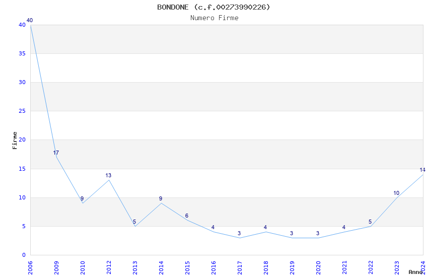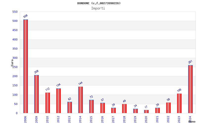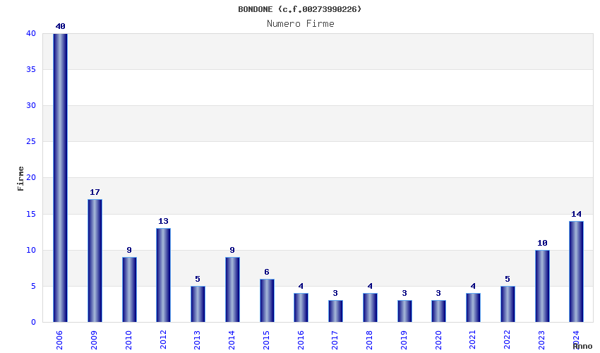 | Anno | Firme | Importi | Media | Naz. | Reg. | Prov. | Comu. |